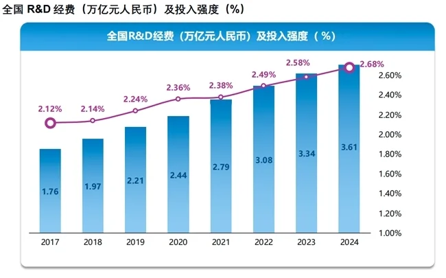 中国制造业正经历从“制造”到“智造”的深刻转型,制造业企业对研发创新的空前重视。报告显示,我国全社会研究与试验发展(R&D)经费投入达到 36130 亿元,比上年增长 8.3%。
